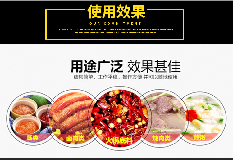 適應(yīng)于各種高粘度醬料的混合攪拌加熱蒸煮炒制:焙烤餡料炒制業(yè)(果醬、蓮蓉、豆沙、水果蓉、蜜餞、棗泥)、肉制品熟食加工業(yè)(鹵味、肉醬、牛肉醬、海鮮醬)、調(diào)味品業(yè)(火鍋底料、方便面醬料、香其醬)、糖果業(yè)(果醬、糖料)、蔬菜玉米加工業(yè)(香菇醬、辣椒醬)、酒店用品及快餐(食堂熬湯、炒菜、燉肉、熬粥)等食品加工業(yè)以及日用化工、制藥等行業(yè)的攪拌混合。